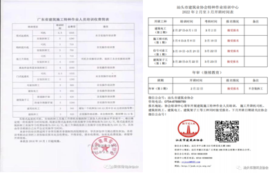 汕頭市建筑業(yè)協(xié)會(huì)關(guān)于3月份開(kāi)展建筑施工特種作業(yè)人員新考證培訓(xùn)班通知