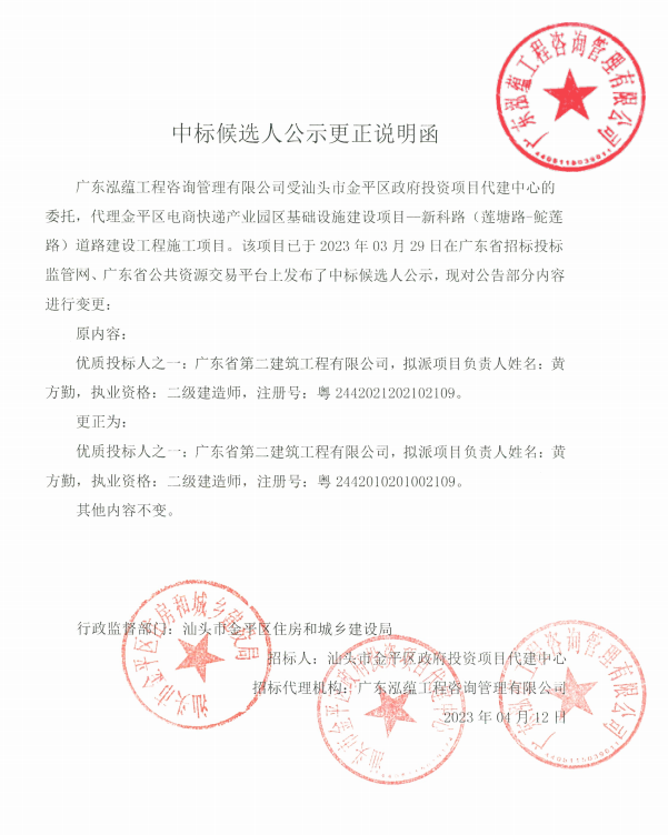 金平區(qū)電商快遞產(chǎn)業(yè)園區(qū)基礎(chǔ)設(shè)施建設(shè)項目—新科路(蓮塘路-鮀蓮路)道路建設(shè)工程施工