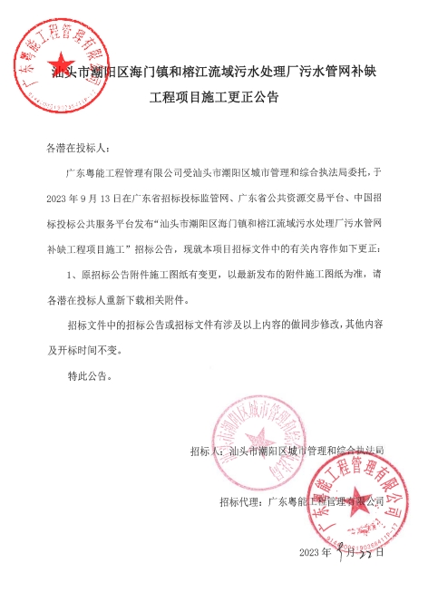 汕頭市潮陽區(qū)海門鎮(zhèn)和榕江流域污水處理廠污水管網補缺工程項目施工