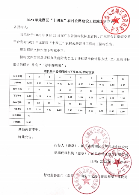 2023年龍湖區(qū)“十四五”農(nóng)村公路建設(shè)工程施工更正公告