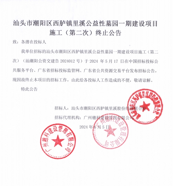 汕頭市潮陽區(qū)西臚鎮(zhèn)里溪公益性墓園一期建設(shè)項目施工(第二次)