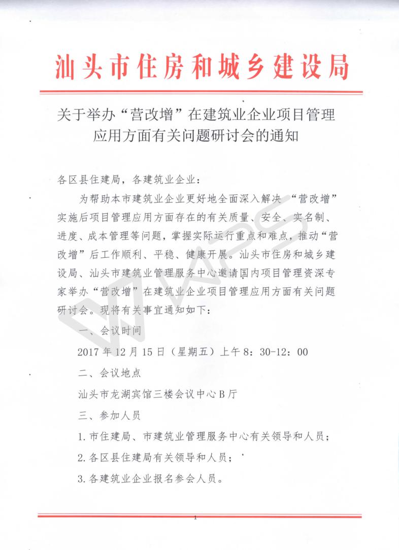 關(guān)于舉辦“營改增”在建筑業(yè)企業(yè)項(xiàng)目管理應(yīng)用方面有關(guān)問題研討會的通知